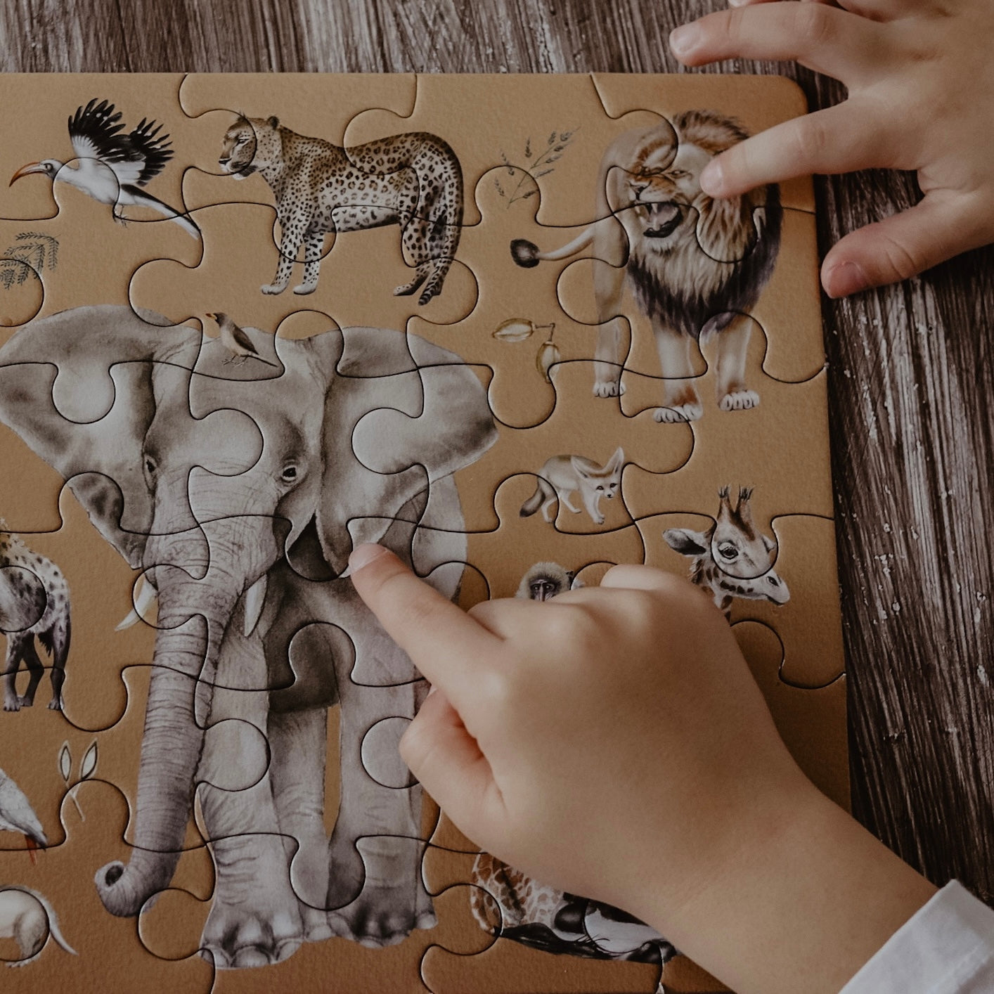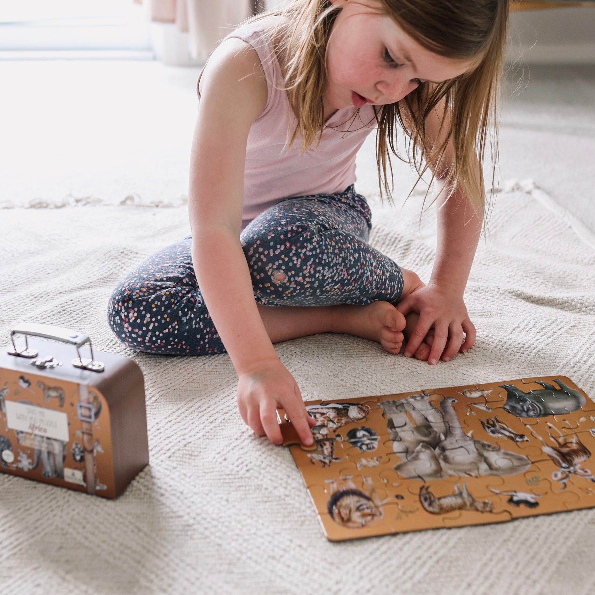 Our Africa "Take Me With You" Puzzle is a stunning 36 piece jigsaw puzzle, packaged in the sweetest mini suitcase with a durable metal handle and latch.