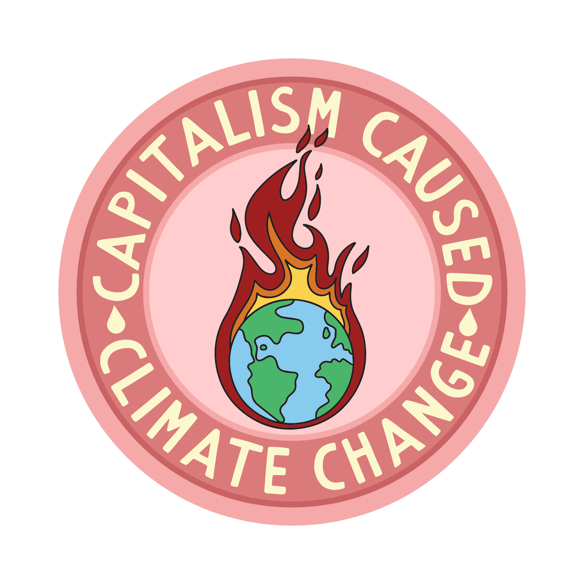 Capitalism Caused Climate Change Sticker. Vinyl 3" Sticker — our durable vinyl stickers are cut from permanent vinyl and topped with a layer of waterproof, scratchproof, and UV resistant (for 5+ years) laminate. Our products feature original illustrations, printed, and packaged by hand in Maryland, USA. 420, Cannabis, Stoner, Weed, Pothead
