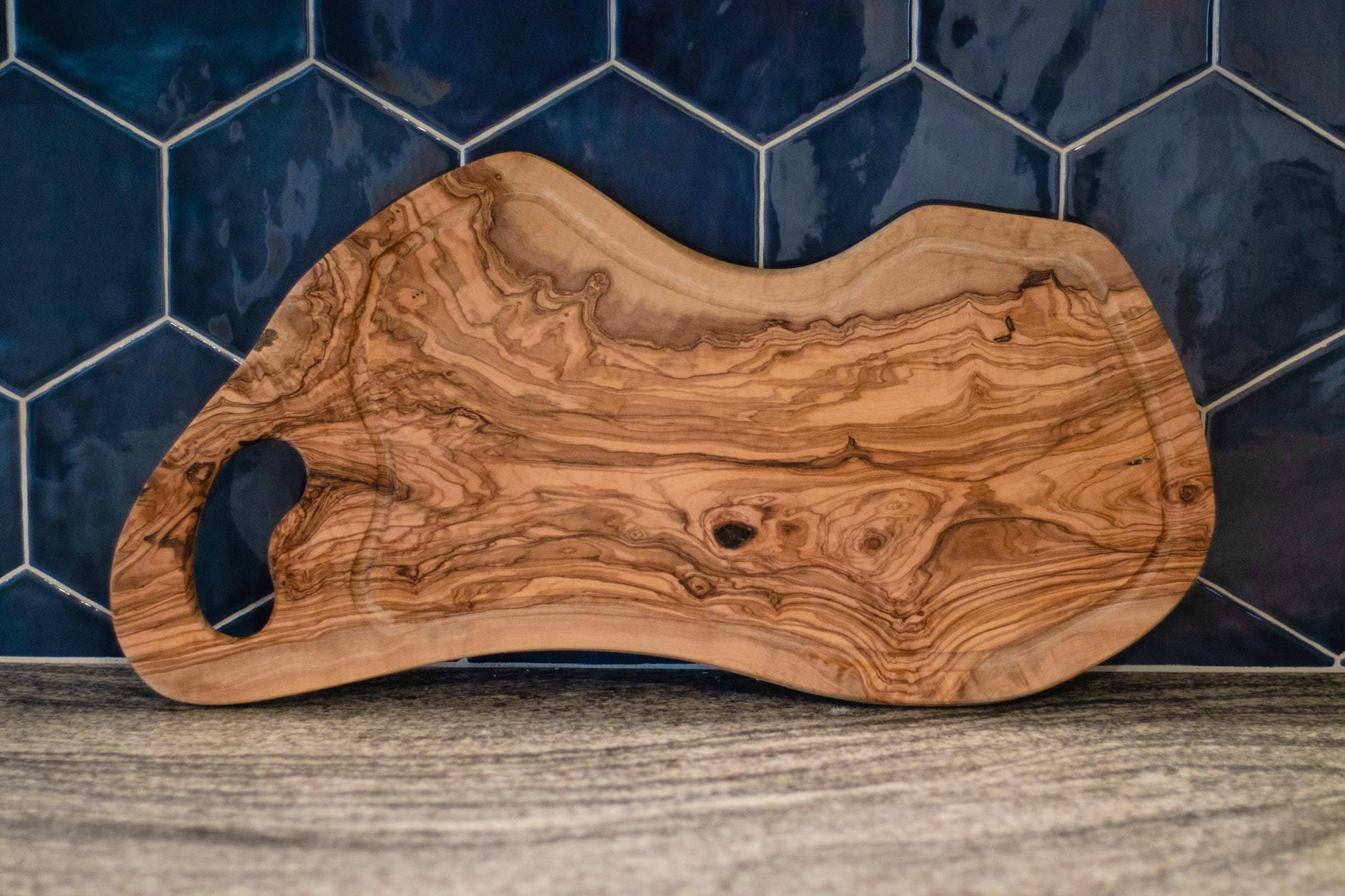 Our Cutting Board is suitable for cutting bread, slicing cheese, chopping vegetables and carving meat. Olive wood is a hard wood making it very dense and durable for everyday use. Olive wood is nonporous so no germs or odors are retained. All products are made from a single piece of wood- they are seamless and no two pieces are alike.
